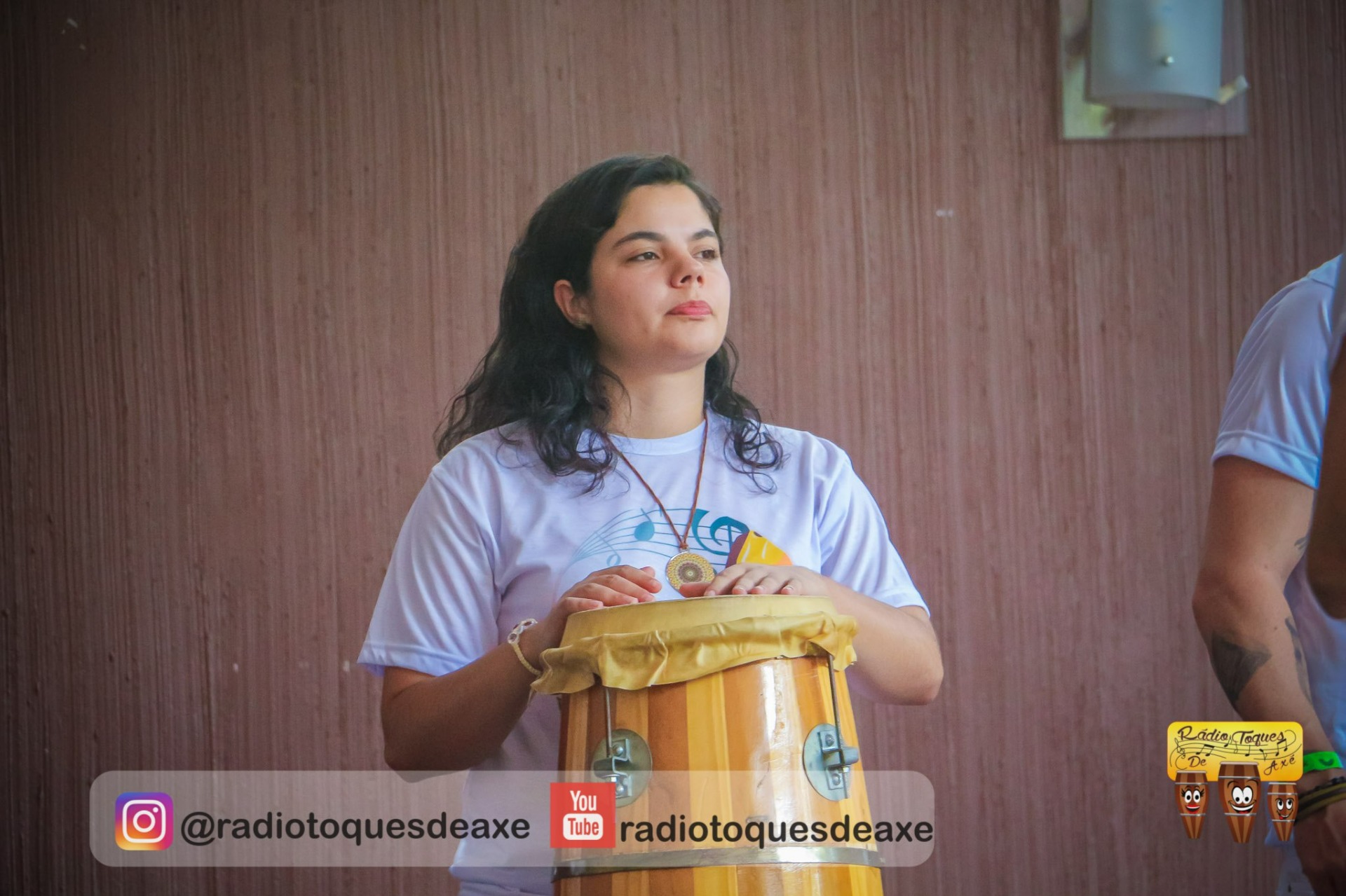 Aulas de atabaque e percursão gratuita para a comunida do bairro do Campo Largo em Jarinu com menina D'Oyá.